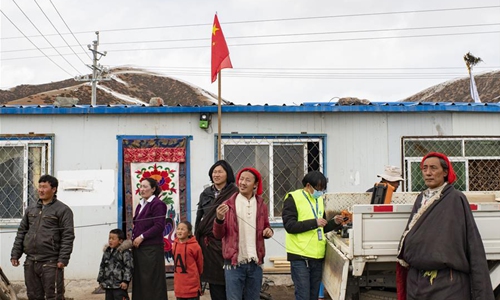 Residents watch technicians of China Telecom's local branch setting up the network in a village in Damxung County, southwest China's Tibet Autonomous Region, March 6, 2020. China Telecom's Tibet branch organize personnel to install and debug network lines in remote pastoral areas in northern Tibet to guarantee online classes for local students amid the outbreak of the novel coronavirus disease (COVID-19). (Xinhua/Purbu Zhaxi)