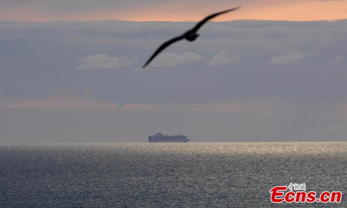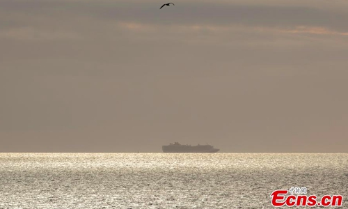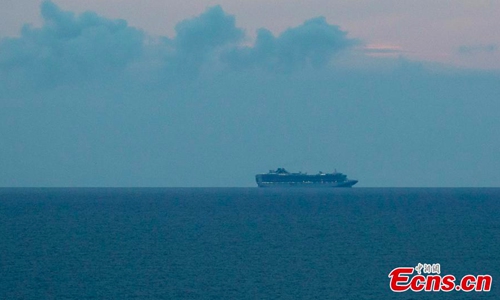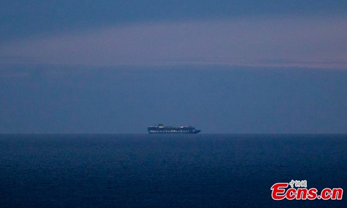 The Grand Princess cruise ship sits off the coast of San Francisco, Mar. 8, 2020. The Grand Princess cruise ship set to dock at the Port of Oakland in California on Monday. Some 19 crew members and two passengers have tested positive for the coronavirus, and all the passengers will now have to undergo quarantine. Twenty Chinese nationals including 11 crew members and nine passengers are on the ship. (Photo: China News Service/ Liu Guanguan)