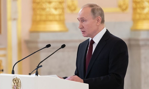 Russian President Vladimir Putin speaks at the ceremony of presenting credentials at the Kremlin in Moscow, Russia, Feb. 5, 2020. (Xinhua/Bai Xueqi)