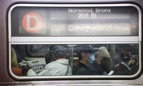 Passenger with face mask is seen in a metro train in Manhattan of New York, the US, on March 4. Photo: Xinhua