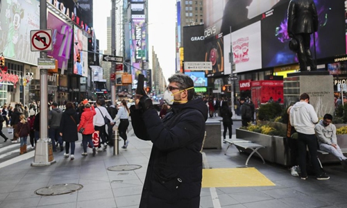 Tourists look around at Times Square in New York, the United States, on March 5. Photo: Xinhua