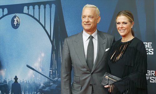 Actor Tom Hanks and wife actress Rita Wilson (R) attend the Bridge of Spies World Premiere on November 13 in Berlin, Germany. Photo: CFP