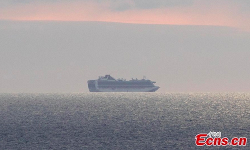 The Grand Princess cruise ship sits off the coast of San Francisco, Mar. 8, 2020. The Grand Princess cruise ship set to dock at the Port of Oakland in California on Monday. Some 19 crew members and two passengers have tested positive for the coronavirus, and all the passengers will now have to undergo quarantine. Twenty Chinese nationals including 11 crew members and nine passengers are on the ship. (Photo: China News Service/ Liu Guanguan)
