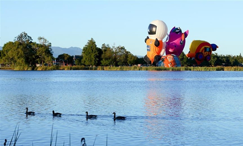 Hot air balloons are seen in the sky during the hot air balloon festival "Balloons over Waikato" in Hamilton, New Zealand, March 18, 2020. Balloons over Waikato is held in Hamilton annually, attracting balloonists from all over New Zealand and around the world. (Photo by Zhu Xi/Xinhua)