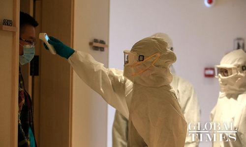 Ji Xiaona, one of the seven doctors who work in the "polluted area" of the quarantine site, told the Global Times on Wednesday that their busy work day starts at 6 am, with one doctor checking the personnel list and making phone calls to those who will leave the site that day, and another delivering breakfast to almost 200 people.