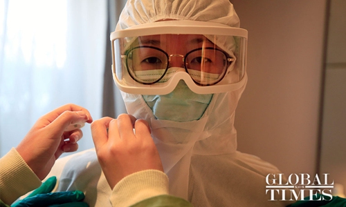 In a centralized quarantine site near Shanghai Hongqiao International Airport, medical personnel deployed by Shanghai Changning District Health Commission, have been working round the clock, despite risks of infection, for half a month, assisting quarantined inbound travelers and helping to identify possible COVID-19 carriers. Photo: Yang Hui/GT