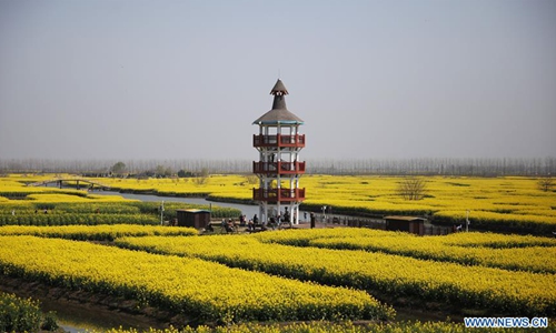 Photo taken on March 18, 2020 shows cole flowers at Qianduo scenic spot in Xinghua City, east China's Jiangsu Province. (Xinhua/Li Yuze)