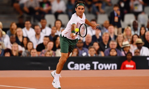 Roger Federer hits a backhand against Rafael Nadal on February 7 in Cape Town, South Africa. Photo: VCG