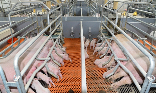 A glance of sows breeding piglets in the hog building Photo: Courtesy of Yangxiang