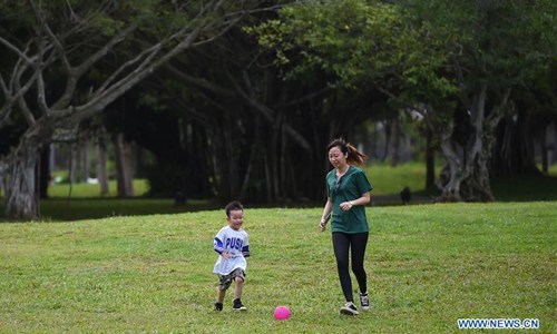 People play at Evergreen Park in Haikou, south China's Hainan Province, March 19. Photo:Xinhua