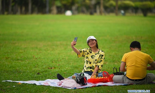 People enjoy themselves at Evergreen Park in Haikou, south China's Hainan Province, March 19. Photo:Xinhua
