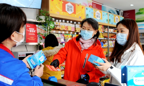 Consumers purchase face masks for children in a Sinopec gas station in Beijing on Wednesday. Sinopec Beijing Oil Products Co began selling masks for children in its 50 gas stations in the capital city on Tuesday with supplies limited to 10,000 pieces per day. Plus, the firm's surgical mask supplies have increased to 150,000 per day. Photo: cnsphotos