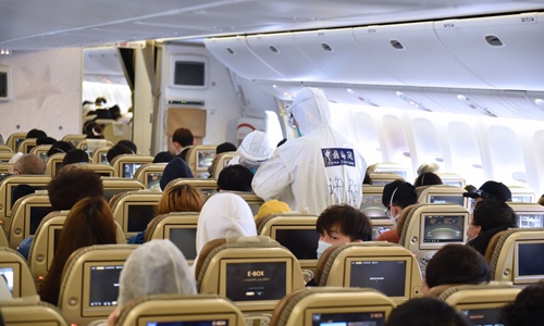 Customs officers inspect an inbound flight at the Capital International Airport in Beijing, capital of China, March 18, 2020. (Xinhua/Chen Zhonghao)