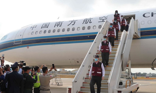 A team of Chinese medical experts arrived in Phnom Penh, capital of Cambodia, on Monday to help the country fight against the COVID-19 pandemic.