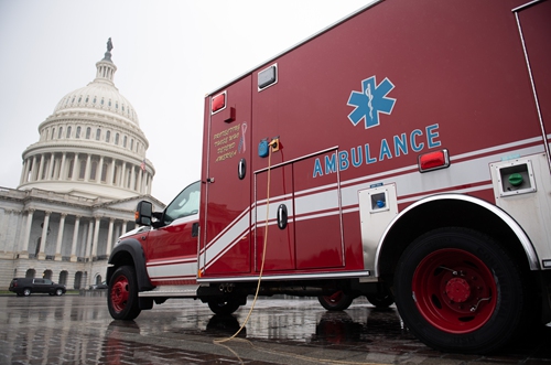 An ambulance sits outside the US Capitol in Washington, DC, Monday. Photo: AFP