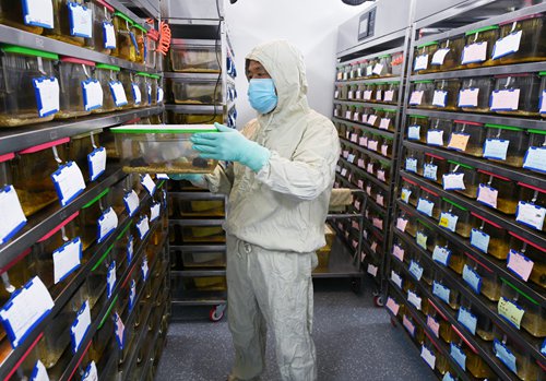 A researcher observes the progress of lab rats in a research base in Nanjing. Photos: VCG