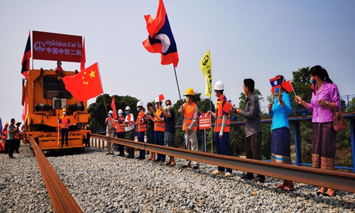 A 500-meter long steel track was laid on March 27 in Vientiane, capital of Laos. Photo: The People's Daily