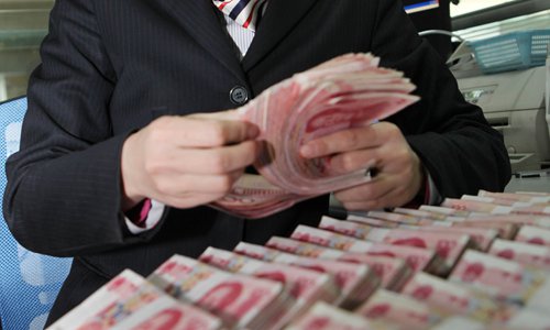 An employee counts yuan banknotes at a bank in Ganyu, East China's Jiangsu Province. File photo: IC