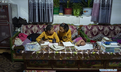 Great-granddaughters of Sonam Drolma have an online lesson in Reguo Village of Gyaca County in Shannan, southwest China's Tibet Autonomous Region, March 24, 2020. Saturday marks the Serfs' Emancipation Day. Sixty-one years ago, more than one million people, or 90 percent of the region's population of that time, were liberated from the feudal serfdom. Sonam Drolma is a 109-year-old villager in Reguo Village of Shannan. Since she was born, she has gone through half a century of twists and turns and sufferings as a serf. As a descendant of serfs, Sonam Drolma began to work for serf owners at the age of 15. Sonam served as a serf for 47 years, witnessing her parents and brother die at an early age because of the overwork and poor living conditions. After the democratic reform, she owned the land, houses, cattle and sheep that she had never dreamed of. Since then, she never had to live the life being exploited and oppressed. Then Sonam Drolma gave birth to her daughter. After China's reform and opening up in early 1980s, Sonam Drolma's daughter Tsering Dzongpa picked up the baton of the family, going all out to make the family shake off poverty and have a well-off life by hard working. Sonam's family first contracted 11 mu (about 0.73 hectare) of land and seven walnut trees in the village. Then Tsering Dzongpa started to make a living by woolen weaving. Hard work brings rich returns. The family bought walking tractors, winnowing machines and other machinery one by one, and became the first family in the village to buy a car. Nowadays, Sonam's family produces more than 5,000 kilograms of grain and 700 kilograms of walnuts annually. If taking the income of woolen weaving into account, the annual income of her family is close to 100,000 yuan (about 14,096 U.S. dollars). The family has expanded their houses for five times. In 2017, they even spent 540,000 yuan (about 76,118 U.S. dollars) to build a new house with an area of 520 square meters. Photo:Xinhua