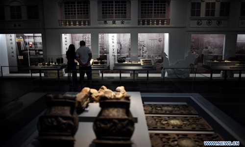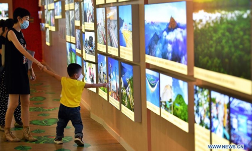 Local citizens visit the provincial museum in Haikou, capital of south China's Hainan Province on March 29, 2020. The museum reopened to public Tuesday as the epidemic waned. (Xinhua/Guo Cheng)