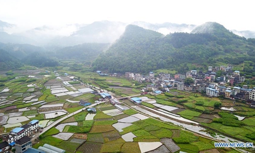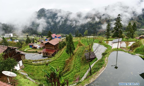 Photo taken on March 29, 2020 shows spring scenery after rainfall in Dongzhuang Village of Jinping County, southwest China's Guizhou Province.Photo:Xinhua