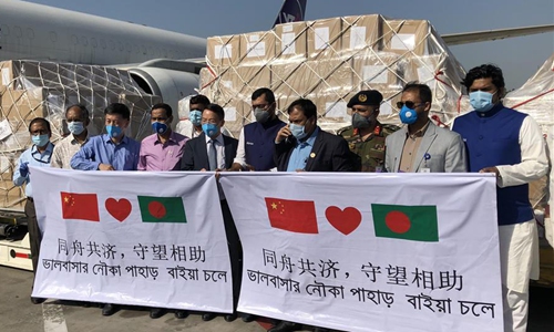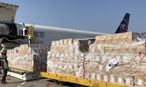 Donated medical supplies from the Jack Ma Foundation and the Alibaba Foundation arrive at Hazrat Shahjalal International Airport in Dhaka, Bangladesh, on March 29, 2020. The Jack Ma Foundation and the Alibaba Foundation, with the coordination and help of the Chinese Embassy in Dhaka on Sunday donated medical supplies to the Bangladeshi Ministry of Health and Family Welfare to assist the Bangladeshi government in containing the COVID-19 spread. The donated medical supplies includes 30,000 COVID-19 testing reagents and 300,000 masks. (Xinhua)