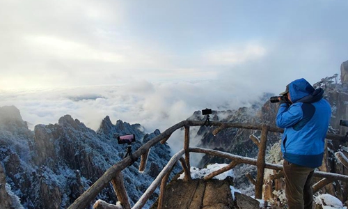 Photo taken on March 28, 2020 shows the scenery of the Huangshan Mountain after spring snow in Huangshan city, East China's Anhui province. (Photo: China News Service/ Mei Jian)