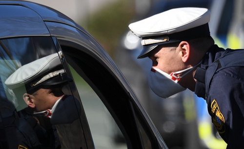 A German police officer wearing a protective mask checks a driver at the border with Austria, near the German village of Oberaudorf as Germany imposed border controls with five countries in a viral fightback, on Monday. Germany introduced border controls with Austria, Denmark, France, Luxembourg and Switzerland in a bid to stem the coronavirus outbreak. Photo: AFP