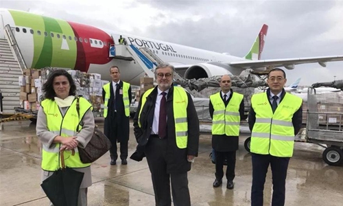 A batch of medical supplies delivered by China's Fosun Group, including 1 million face masks and 200,000 test kits, arrived in Lisbon from China on Monday, according to a press release by the company.