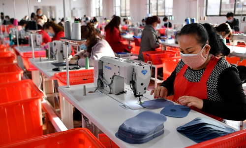 Workers manufacture suitcases at a factory in Yaozhou District of Tongchuan City, northwest China's Shaanxi Province, March 12, 2020. (Xinhua/Liu Xiao)