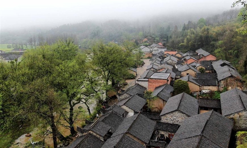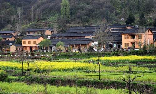 Photo taken on March 27, 2020 shows a view of the Tianpudawan village in Xinxian County of Xinyang City, central China's Henan Province. In recent years, guided by the conviction that "lucid waters and lush mountains are invaluable assets", Xinyang City has promoted its rural revitalization through shaping a batch of beautiful and characteristic villages in a well-coordinated manner. (Xinhua/Li An)