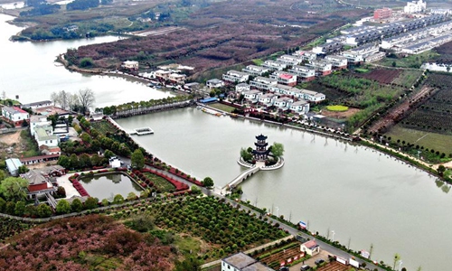 Aerial photo taken on March 29, 2020 shows a view of the Liangang Village in Huangchuan Village of Xinyang City, central China's Henan Province. In recent years, guided by the conviction that "lucid waters and lush mountains are invaluable assets", Xinyang City has promoted its rural revitalization through shaping a batch of beautiful and characteristic villages in a well-coordinated manner. (Xinhua/Li An)
