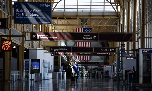 Photo taken on March 30, 2020 shows an almost-empty terminal building at Ronald Reagan Washington National Airport in Arlington of Virginia, the United States. (Photo by Ting Shen/Xinhua)