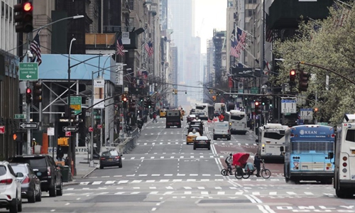 Few people are seen on a street in New York City, US, on March 19. Photo: Xinhua