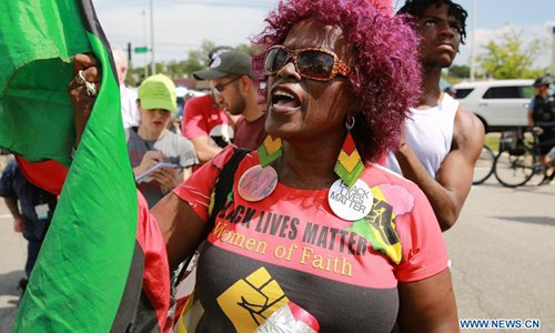 A protester calls for more attention to gun violence in African American community during a protest in Chicago, the United States, on September 3, 2018. Photo: Xinhua