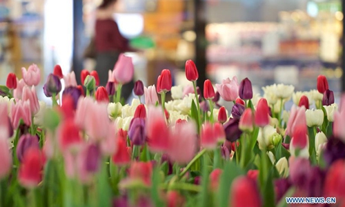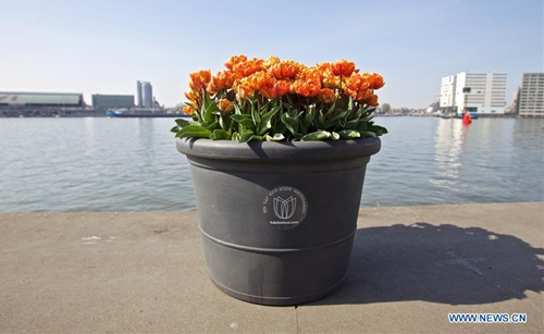 Amsterdam's Tulip Festival 2020 brings tulips into streets throughout the whole month of April. Due to the coronavirus epidemic, some tulip locations are closed this year. (Photo by Sylvia Lederer/Xinhua)