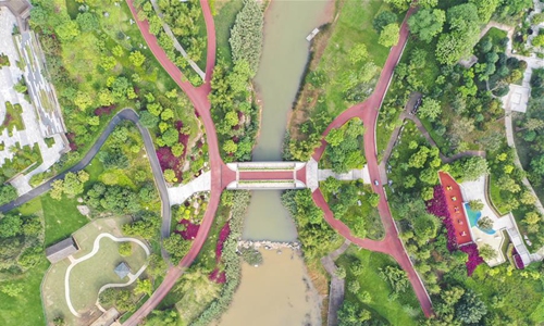 Aerial photo taken on April 9, 2020 shows a view of the Nanning Garden Expo Park in Nanning, south China's Guangxi Zhuang Autonomous Region. (Xinhua/Cao Yiming)
