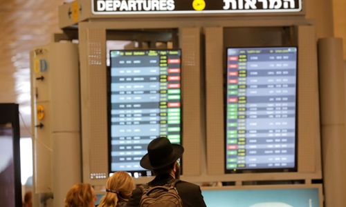 Passengers check the flight schedule at the departures hall of Ben Gurion International Airport, near the central Israeli city of Tel Aviv. (Xinhua/Gil Cohen Magen)