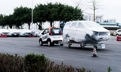 An unmanned logistics vehicle at UISEE works at an auto manufacturing facility in Liuzhou, South China’s Guangxi Zhuang Autonomous Region in December 2019. Photo: Courtesy of UISEE