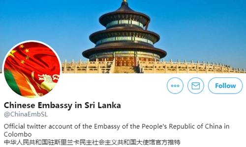 The screenshot of the official Twitter account of the Chinese Embassy in Sri Lanka. Photo: screenshot