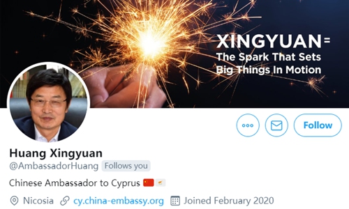 Huang opened his account in March and has grabbed wide attention with more than 1,000 followers and interacted actively with officials of Cyprus including the country's president Nicos Anastasiades. His most popular tweet was read 25,400 times and received 420 likes and 141 retweets.