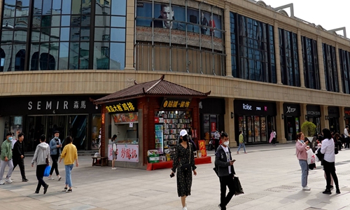 Pedestrians stroll along a street in Zhengzhou, Central China's Henan Province. Data from the Ministry of Commerce showed that the daily retail sales of key enterprises in early April increased 3.1 percent compared with late March. Photo: cnsphoto