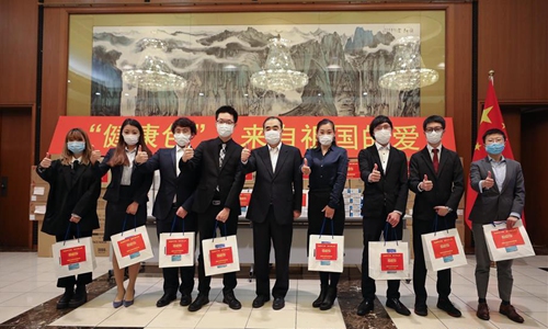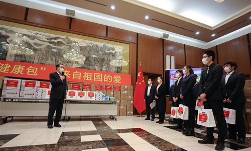 The first batch of 10,000 health packs arrived at the embassy on Thursday evening, and are expected to be delivered to Chinese students in more than 200 schools. According to the embassy, another batch of health packs will arrive on Sunday.