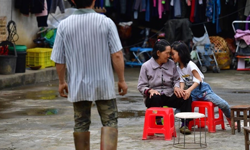 Qin Meifeng and Pan Yuxin, Pan Wenming's mother and his daughter, whisper in the yard at home in Tunqiu Village of Pingshan Township in Luzhai County, south China's Guangxi Zhuang Autonomous Region, April 17, 2020. Pan Wenming, 44, father of a 7-year-old daughter and 5-year-old twin sons, took the whole family out of poverty through hard work in a small mountain village in Guangxi. After working over ten years outside of hometown, Pan and his wife returned in 2012, because of the need to take care of his elderly parents, and started a business. They put in their hard work in agriculture and animal husbandry including raising goats and chickens and planting citrus on several hills. In recent years, the local rural economy has developed rapidly and their family income has steadily increased. Affected by the novel coronavirus epidemic, Pan had encountered difficulty in sales of his products. But as the epidemic waned and with the help of the local government, the products were sold smoothly in the end. The family planned to build new houses next year to improve living conditions. (Xinhua/Huang Xiaobang)