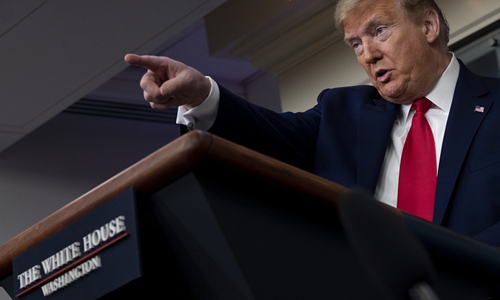 US President Donald Trump speaks during a Coronavirus Task Force press briefing at the White House in Washington, DC, on Sunday. Photo: AFP