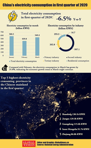 China's electricity consumption in first quarter of 2020