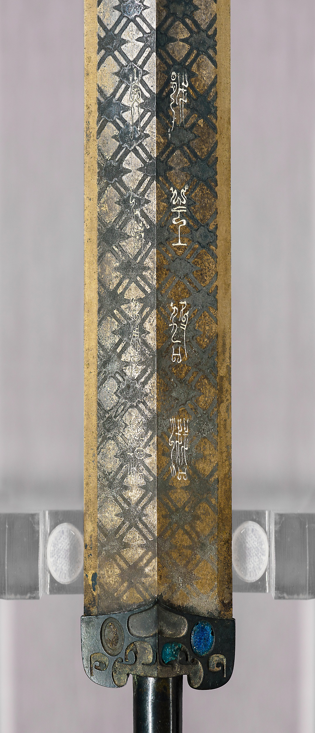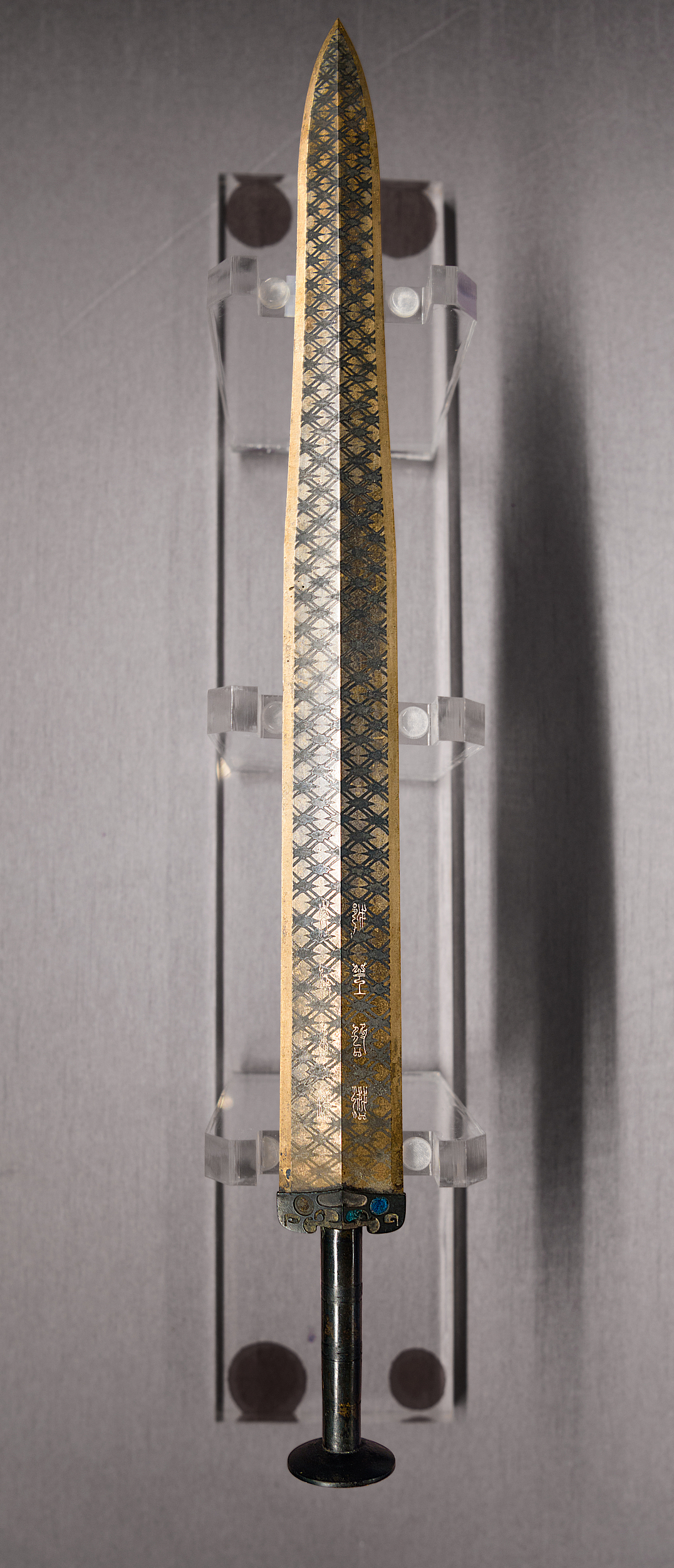 With a length of 55.6 centimeters, the bronze sword weighs a mere 875 grams, lighter than two bottles of water. Inlaid with turquoise on its hilt, the sword's blade was embellished with rhombi patterns on both sides. The pommel was designed with 11 concentric circles with each interval as small as 0.2 millimeters. It is astonishing to see such an exquisite level of craftsmanship from more than 2,400 years ago.