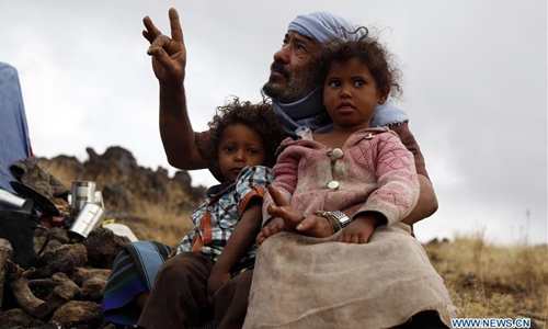 Yemeni displaced people are seen at a camp on the outskirts of Sanaa, Yemen, Nov. 26, 2019. More than three million Yemenis displaced by civil war are struggling to survive this harsh winter. TO GO WITH "Feature: Displaced Yemenis face hunger, severe frost as winter arrives" (Photo by Mohammed Mohammed/Xinhua)