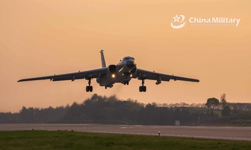 An H-6 bomber attached to an aviation regiment of the air force under the PLA Southern Theater Command takes off from the flightline for a round-the-clock penetration flight training exercise on March 30, 2020. (eng.chinamil.com.cn/Photo by Wang Wenbin)