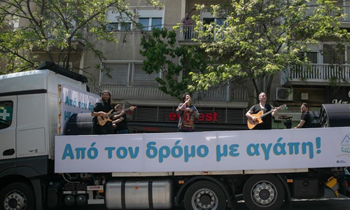 The "travelling" concert was organized by the City of Athens. The truck, with "from the street with love" written on the banner spread along its side, made short stops at central squares, in front of COVID-19 referral hospitals and the office of Prime Minister Kyriakos Mitsotakis.